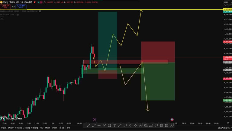 Khi giá đóng nến M15 thủng 4.120 sẽ phá vỡ cấu trúc tăng ngắn → chuyển trạng thái sang Sell.