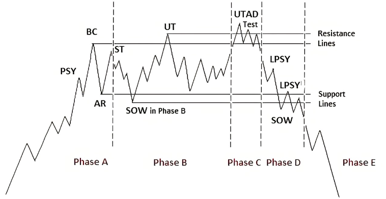 Các phase (pha) trong chu kỳ phân phối theo lý thuyết Wyckoff