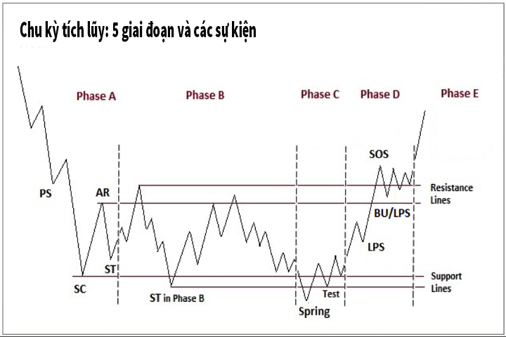 Các phase (pha) trong chu kỳ tích lũy theo mô hình Wyckoff