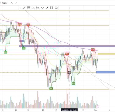 Cấu trúc giá tổng thể: Lower High – Lower Low → thị trường đang có xu hướng giảm ngắn hạn, dù khung lớn vẫn tăng.