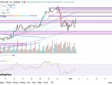Mua (Buy)$4.440 – $4.450. TP $4.480 – $4.500. SL $4.430 . Ưu tiên canh mua khi giá giữ vững trên vùng EMA 50 sau nhịp quét tin.