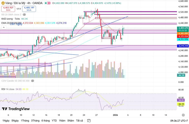 Kháng cự: $4.480 – $4.500 (Vùng cản mạnh nhất trong ngày).