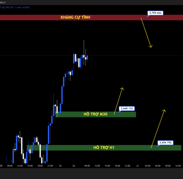Trên H4 và H1, lực mua vẫn giữ vai trò chủ đạo, giúp xu hướng tăng duy trì ổn định.