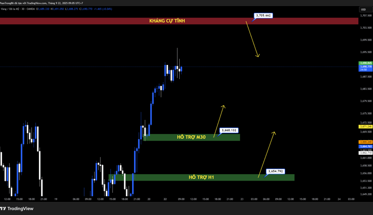 Ở M30, giá đã vượt qua vùng kháng cự quan trọng, mở ra tín hiệu hình thành một nhịp tăng ngắn hạn mới.