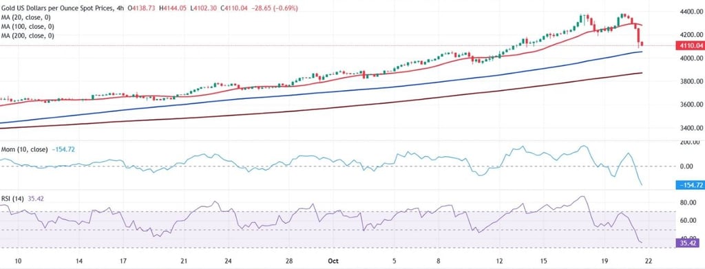 Nhận định XAU/USD ngày 22/10/2025: Vàng giảm sốc hơn 5% mức giảm sâu nhất kể từ năm 2020 do đồng USD tăng và tâm lý lạc quan về thương mại