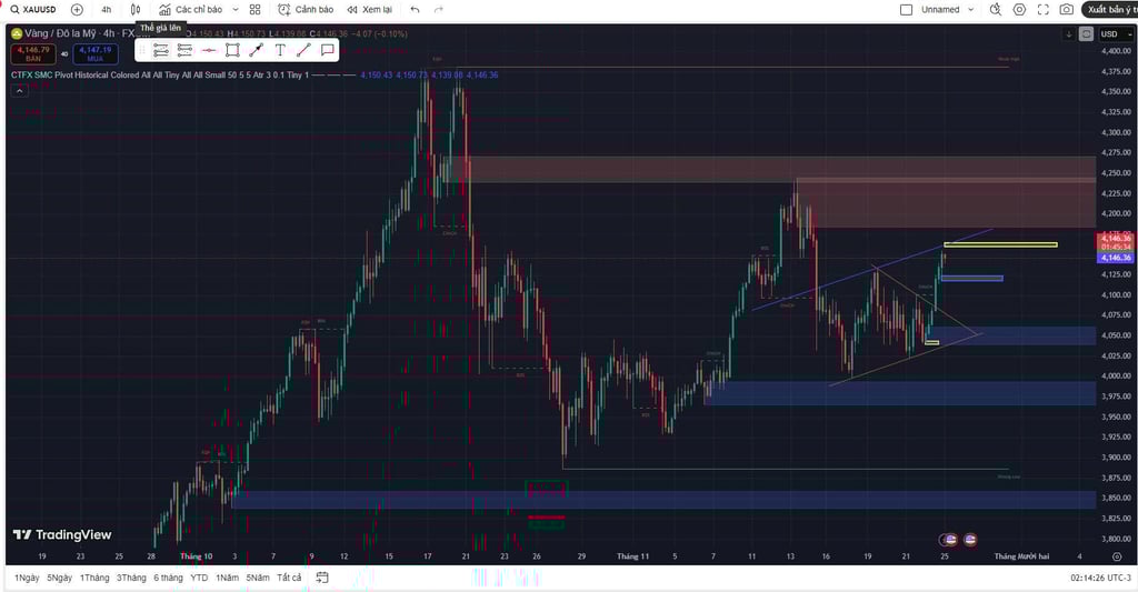 Nhận định XAU/USD ngày 25/11/2025: XAU/USD tiếp tục giằng co quanh mức 4.135 đô la trước dữ liệu của Hoa Kỳ